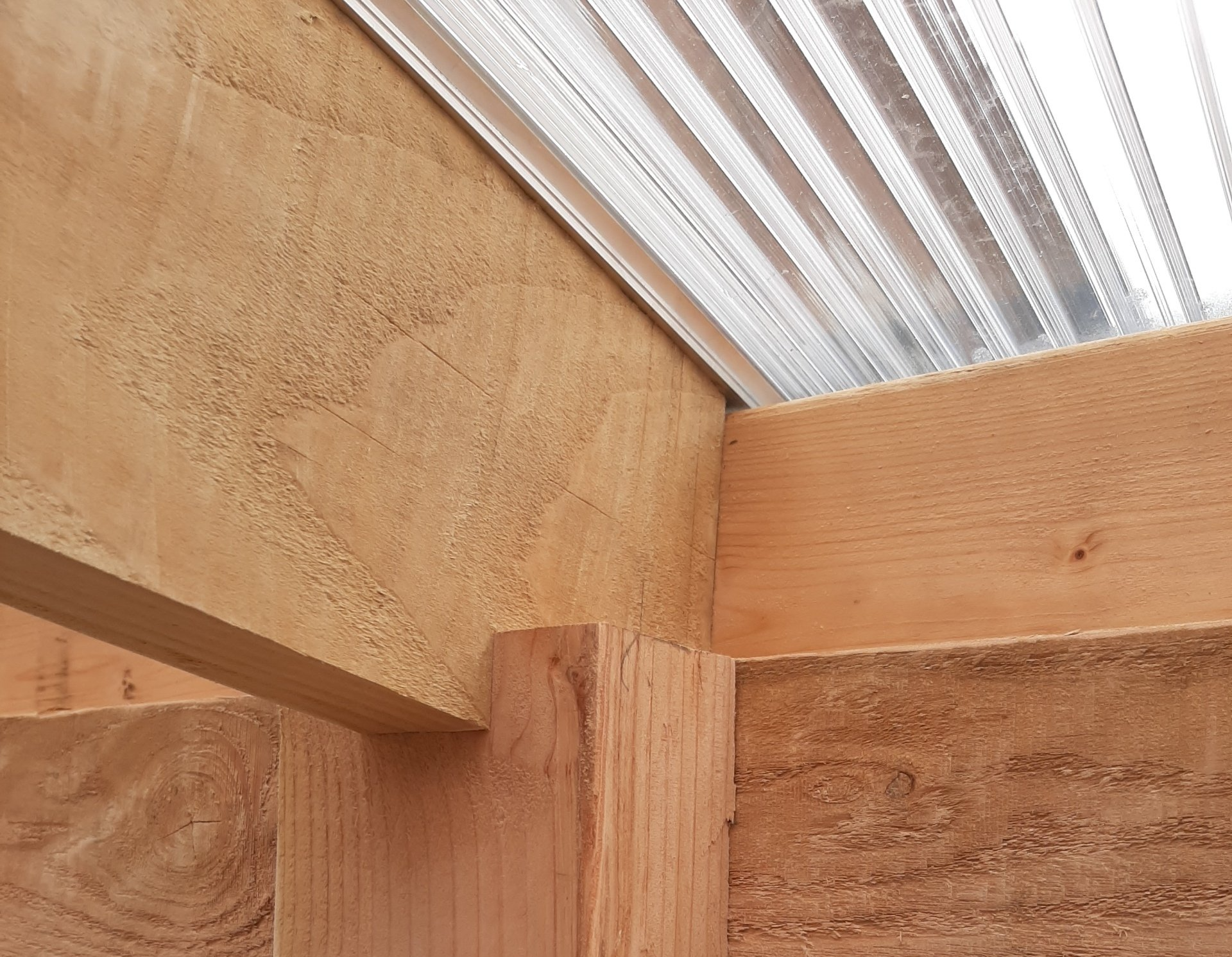 Douglas-houten carport 3x5 mtr, met polycarbonaat opaal platen.