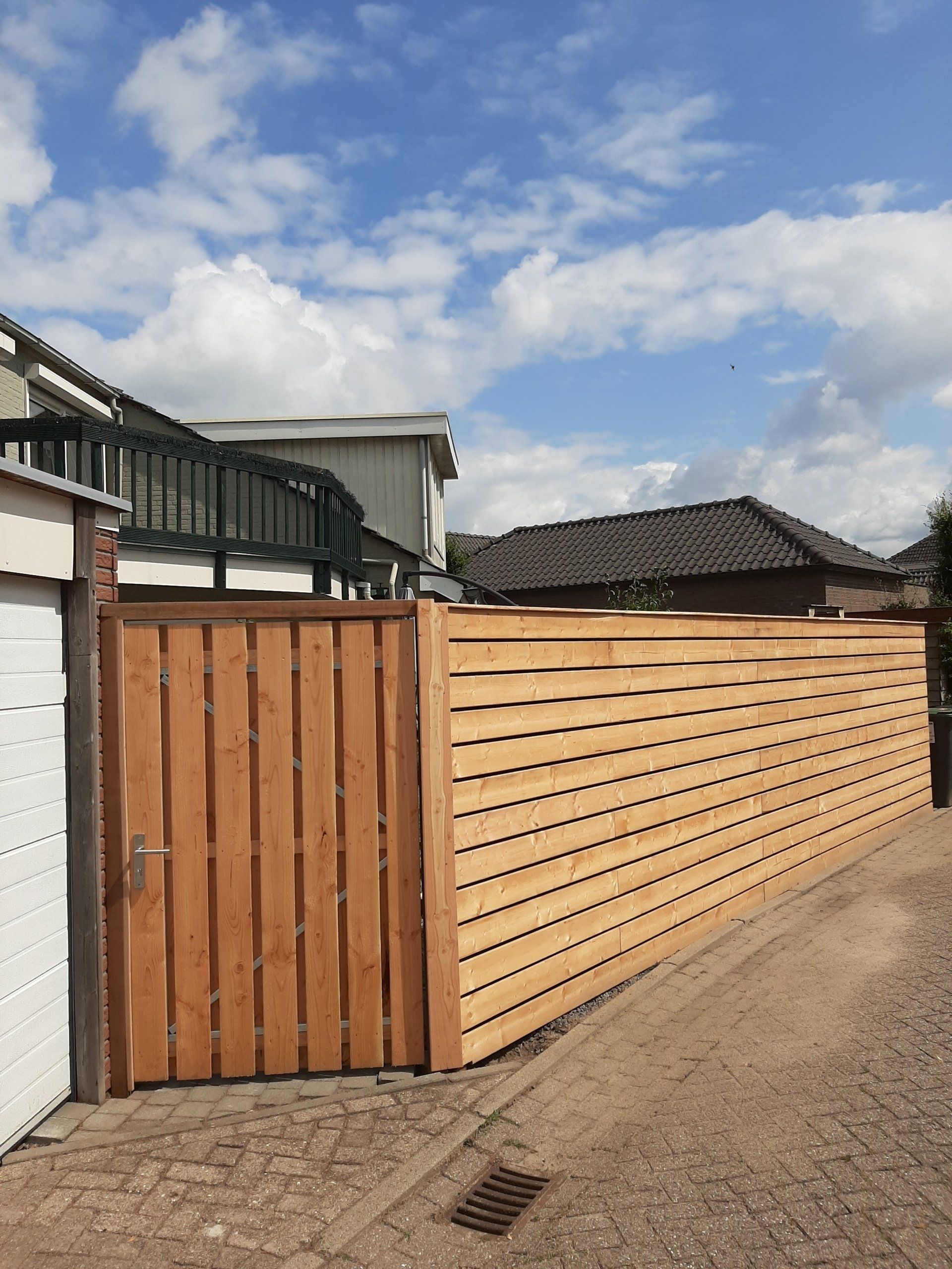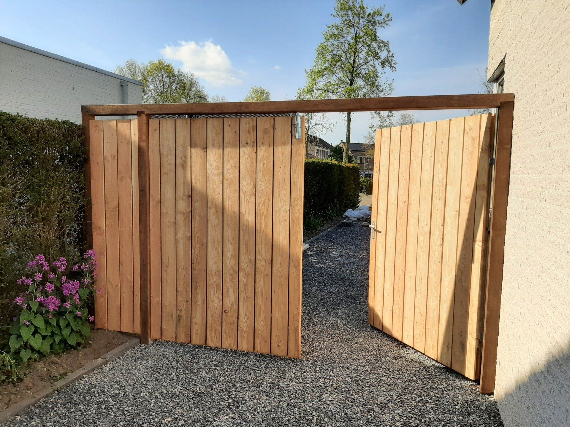 Douglas houten tuinafscheiding rondom, tuinpoort en