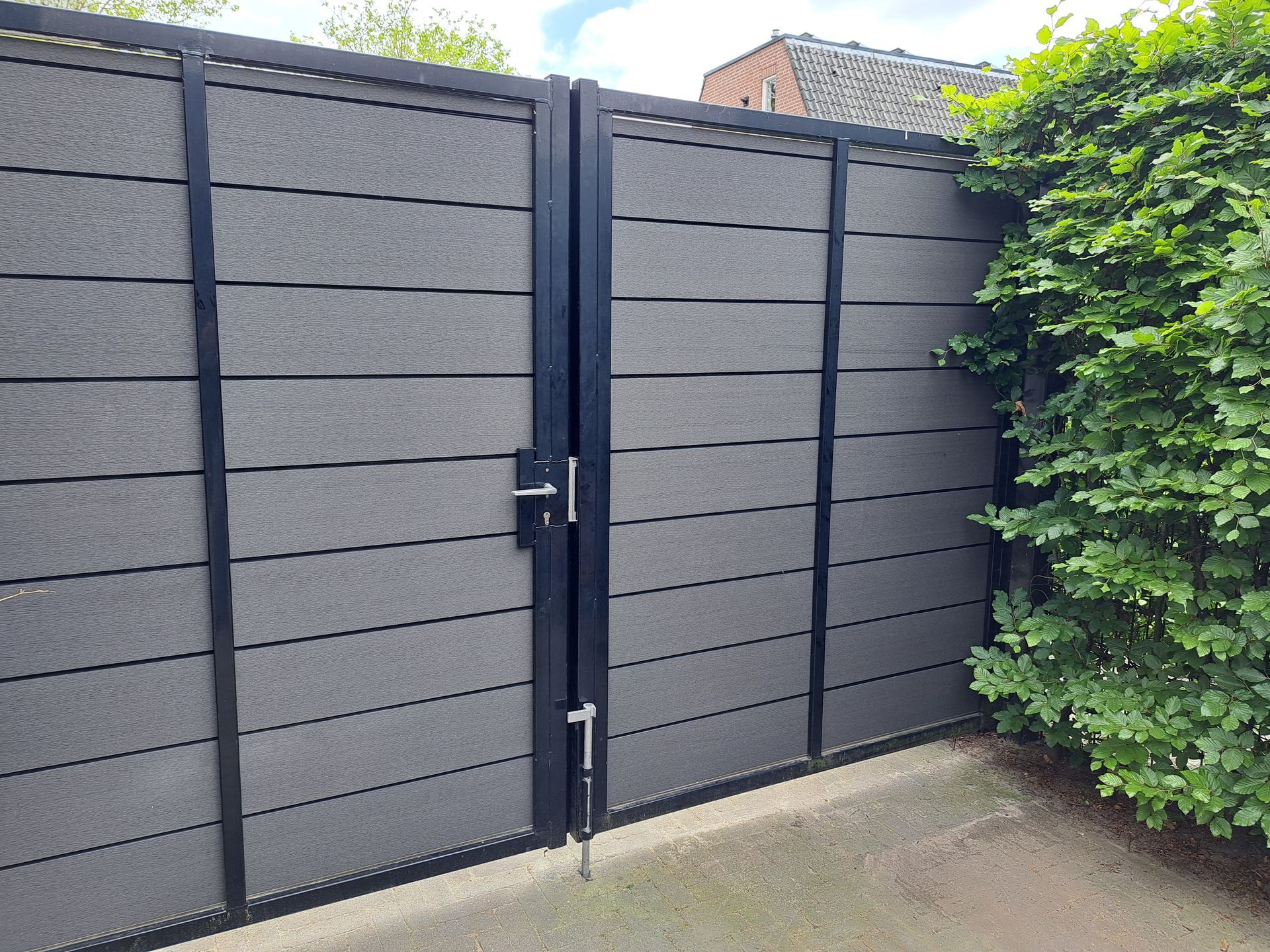 Een strakke tuinafscheiding voor maximale privacy, inclusief goed afsluitbare tuinpoort.