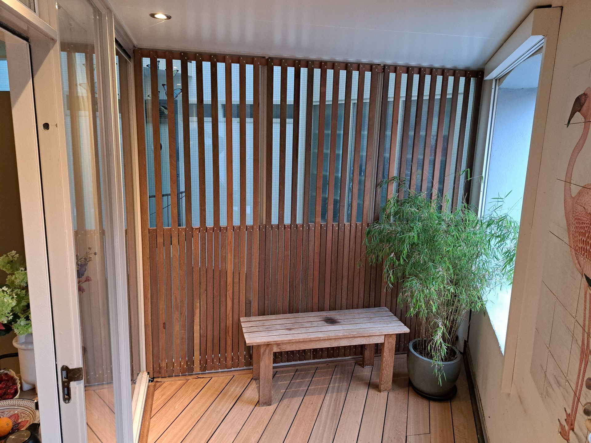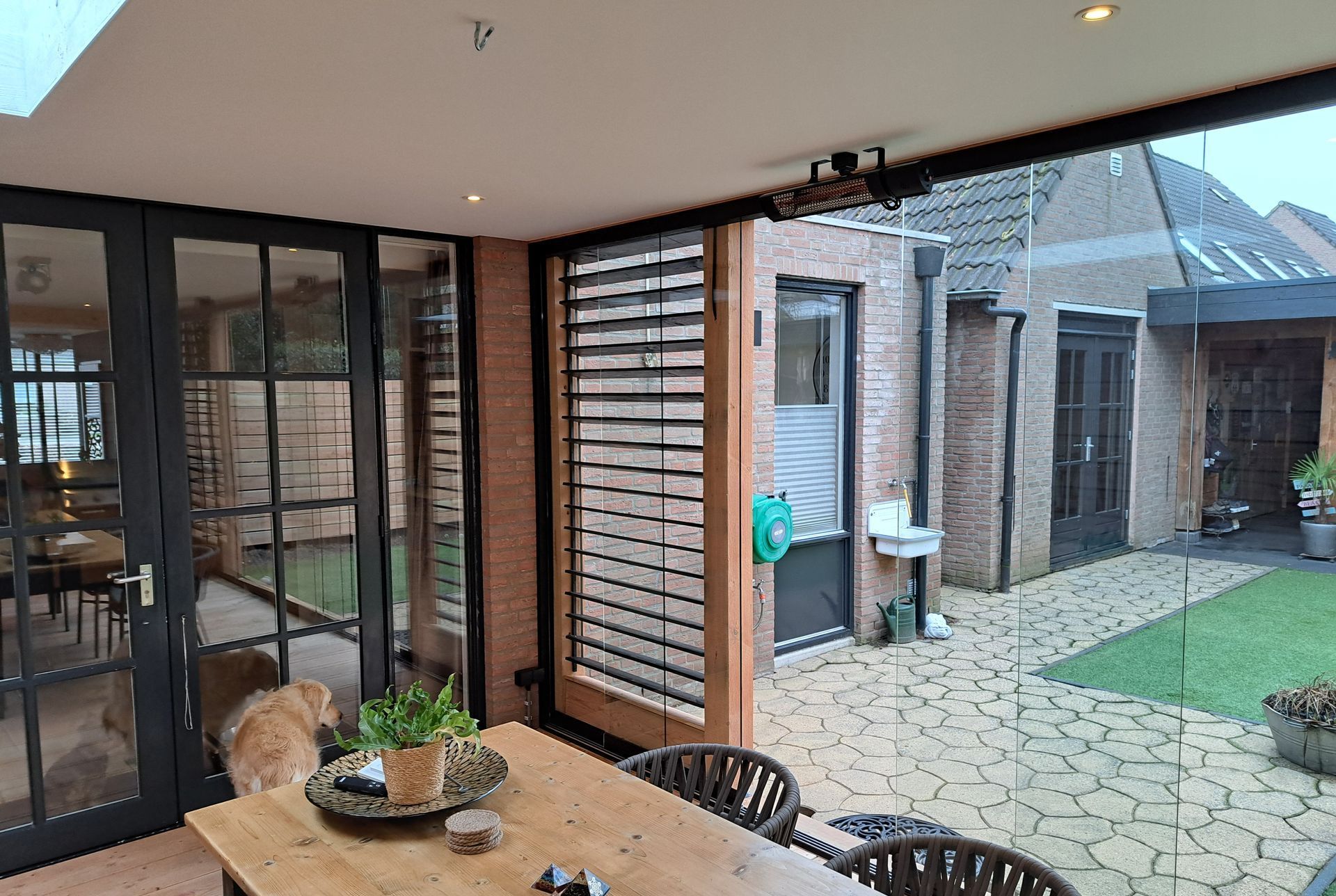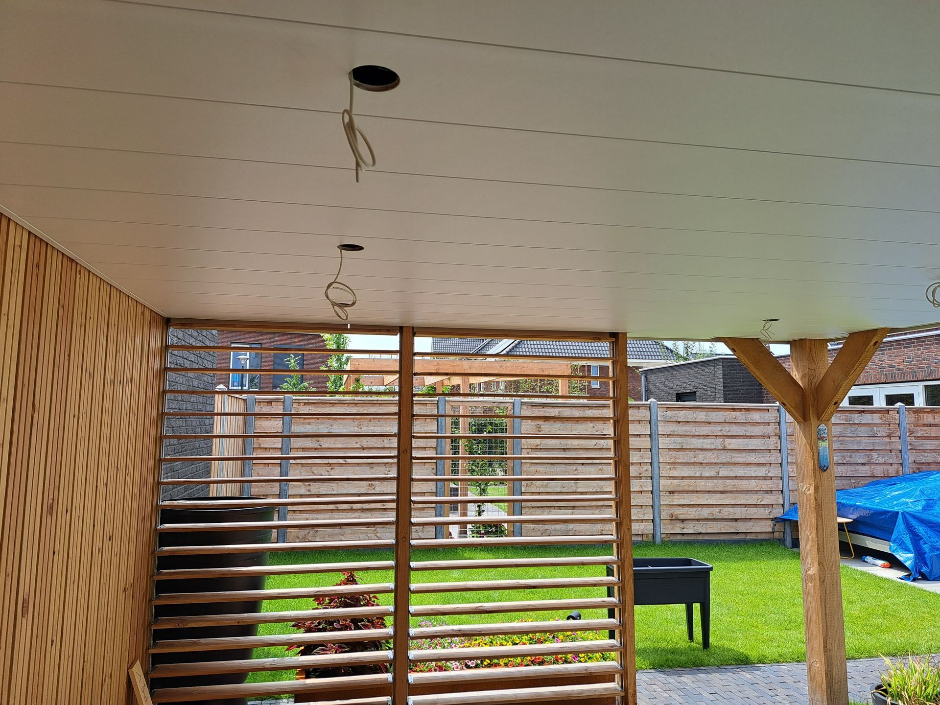Lamellenwand in bestaande overkapping voor meer sfeer en comfort.