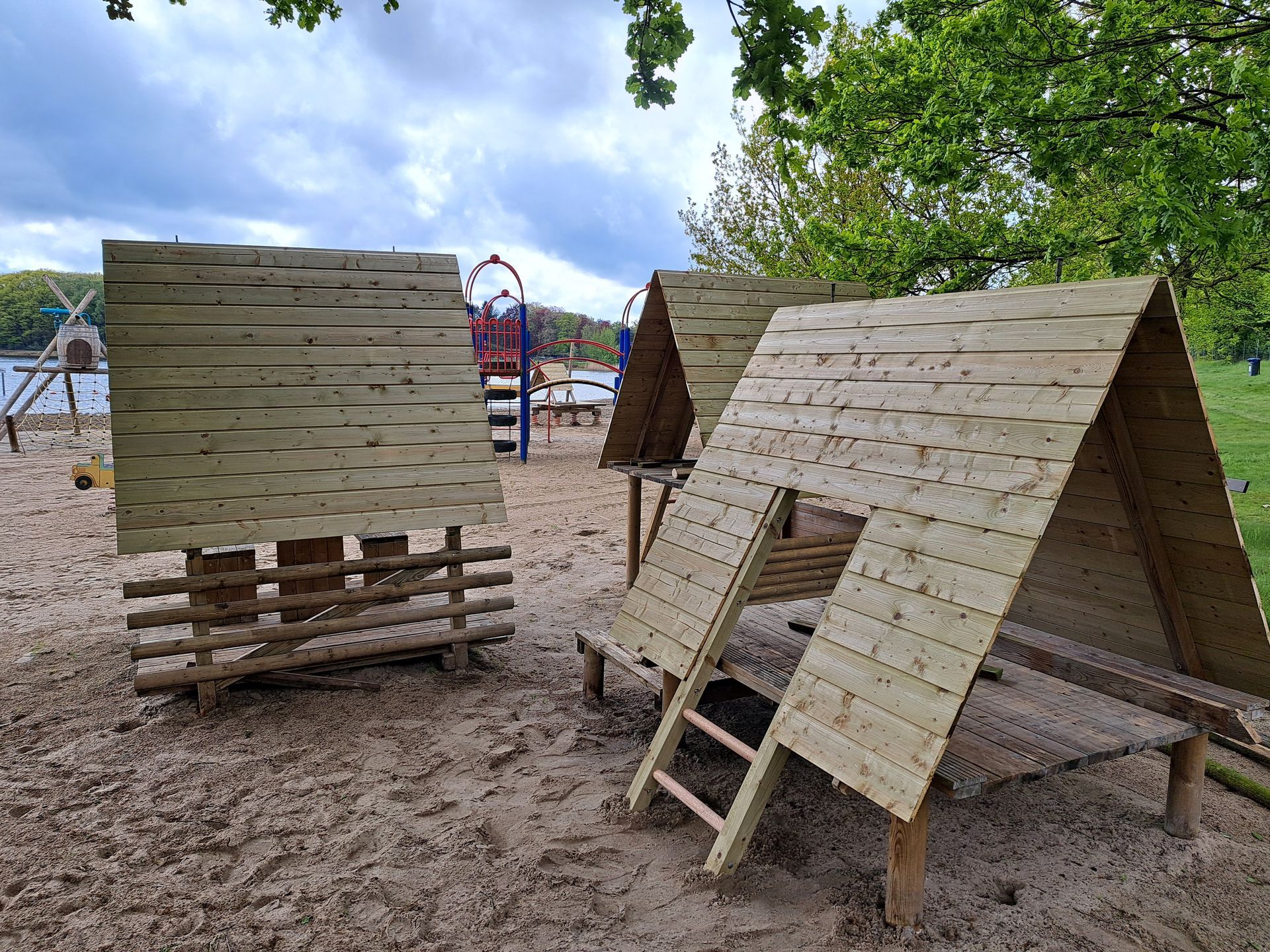 Het weer veilig maken voor kinderen van de speeltoestellen op het strand.