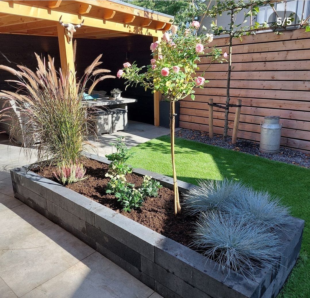 Schuttingwand om het terras een extra accent te geven.
